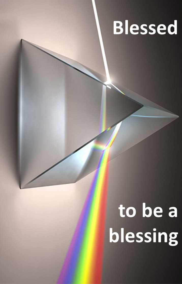 In the graphic the bright light of God’s love shines on a single point, then is dispersed by the prism into the beautiful diversity of the rainbow.