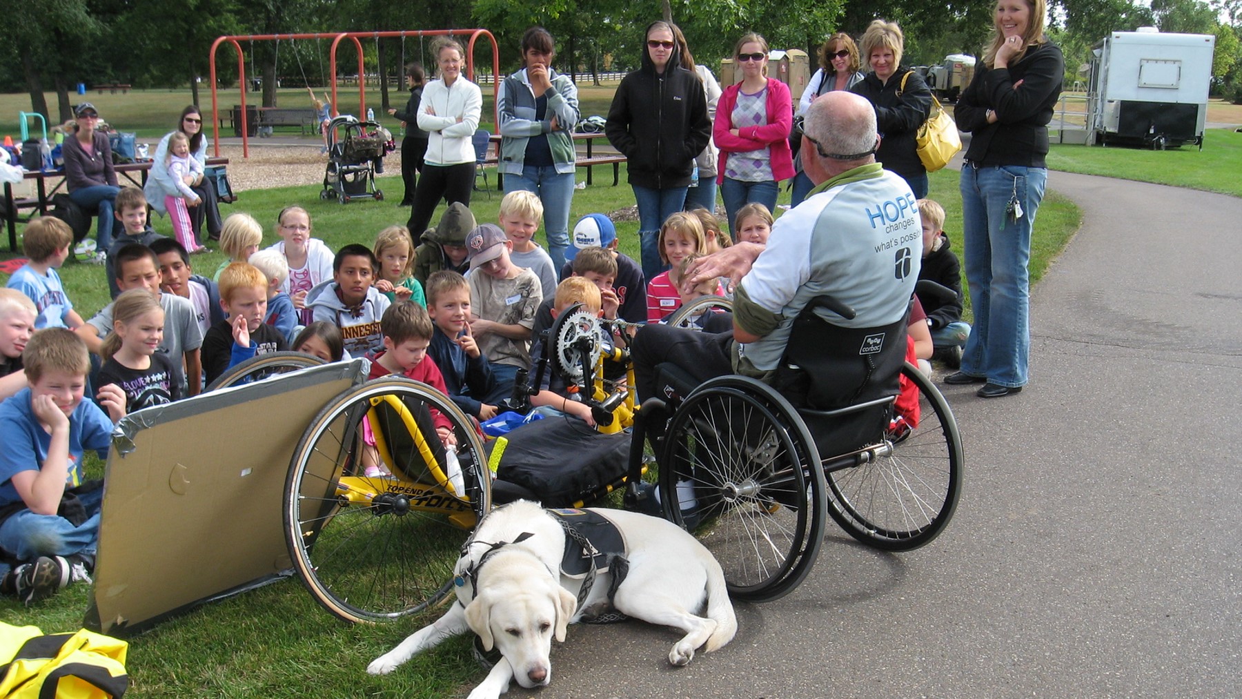 First, we told our story in a park to a group of moms and kids who seemed fascinated by a 1500-mile ride on my odd bike. A relaxing encounter that couldn’t have been pre-scripted.
