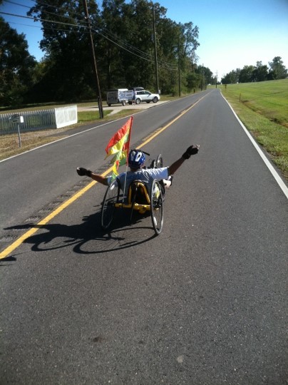 None has been more memorable than this one. It was taken on the final day of the 1500-mile ride on the outskirts of New Orleans. The white car in the distance marks the finish line of our epic journey.