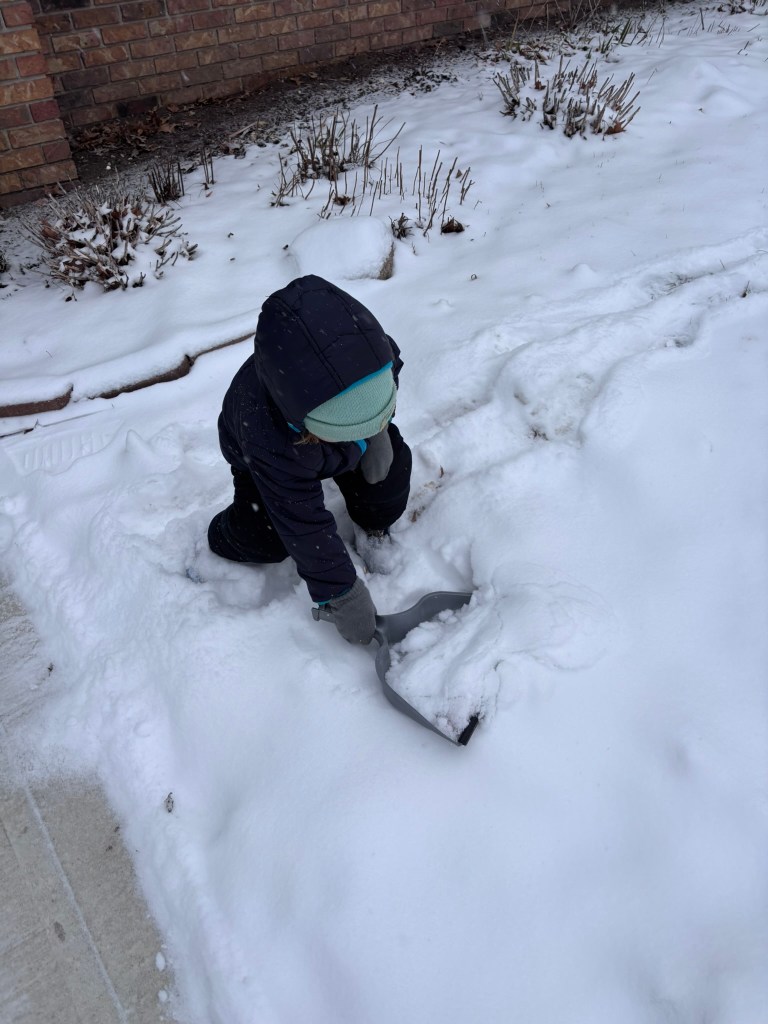 But Ben’s not a spiritual lesson, nor is he an unproductive shoveler. He’s an almost three-year-old. And I’m not a spiritual lesson or a productive shoveler. We are living and loved people.