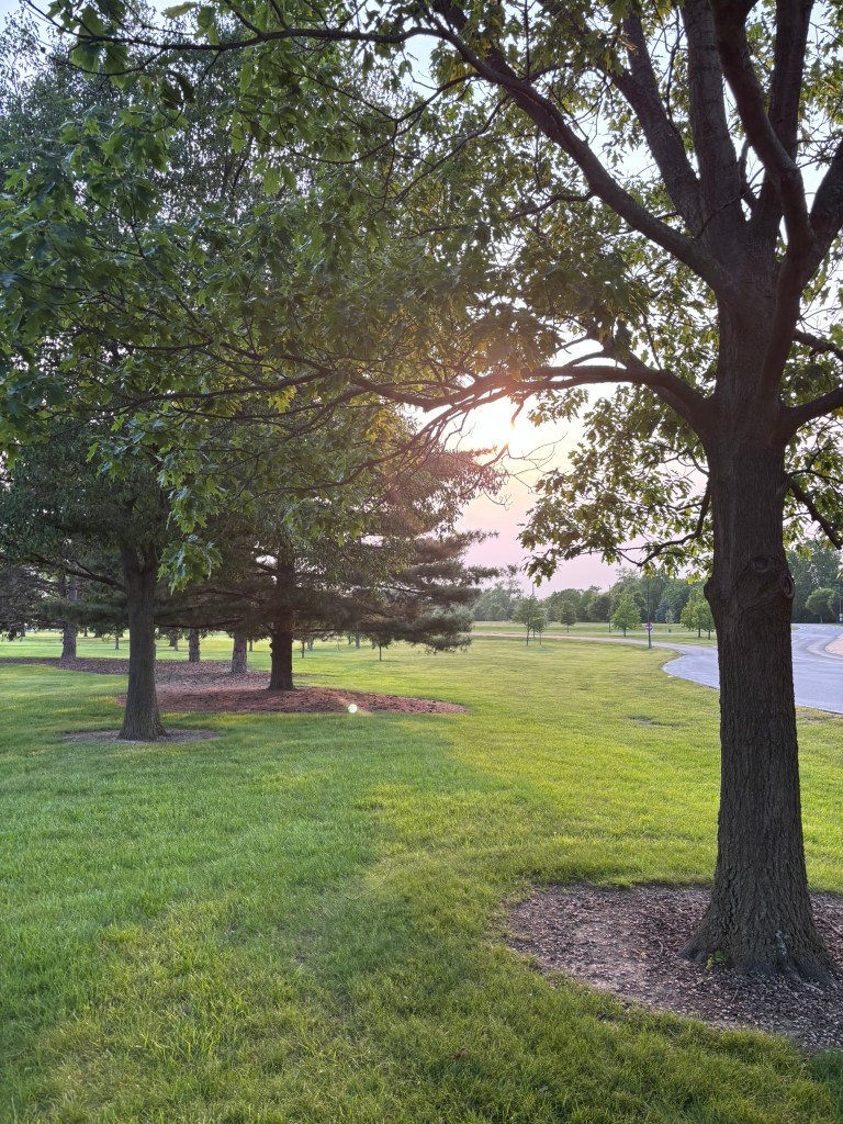 I walked just to get a long walk. As I was getting near the end, I moved from the paved trail to cut across the campus. I realized that, apart from mowing, I haven’t walked on the grass for a long time.